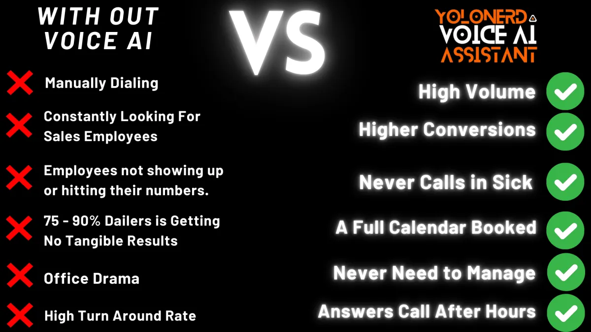 The income and earnings representations provided by YoloNerd Voice AI Assistant and any associated advertisers or sponsors (collectively referred to as "YoloNerd Voice AI Assistant") are presented solely as inspirational examples. Individual results are variable and are not guaranteed. Any achievements or figures disclosed are reflective of YoloNerd Voice AI Assistant's internal experience and the experiences of clients and students who have engaged in dedicated efforts over time. These figures are exclusive to YoloNerd Voice AI Assistant and selected individuals who have demonstrated diligence, added value, and provided service, principles which the YoloNerd programs aim to support. Individual results will be contingent upon numerous factors, including but not limited to, background, experience, and level of commitment. All business ventures inherently involve risk and require sustained, focused effort. If you are unwilling to accept these conditions, the YoloNerd Voice AI Assistant program may not be suitable for you. By engaging with YoloNerd Voice AI Assistant’s programs, you acknowledge and accept these terms.